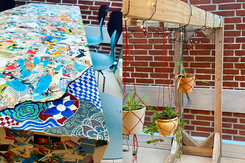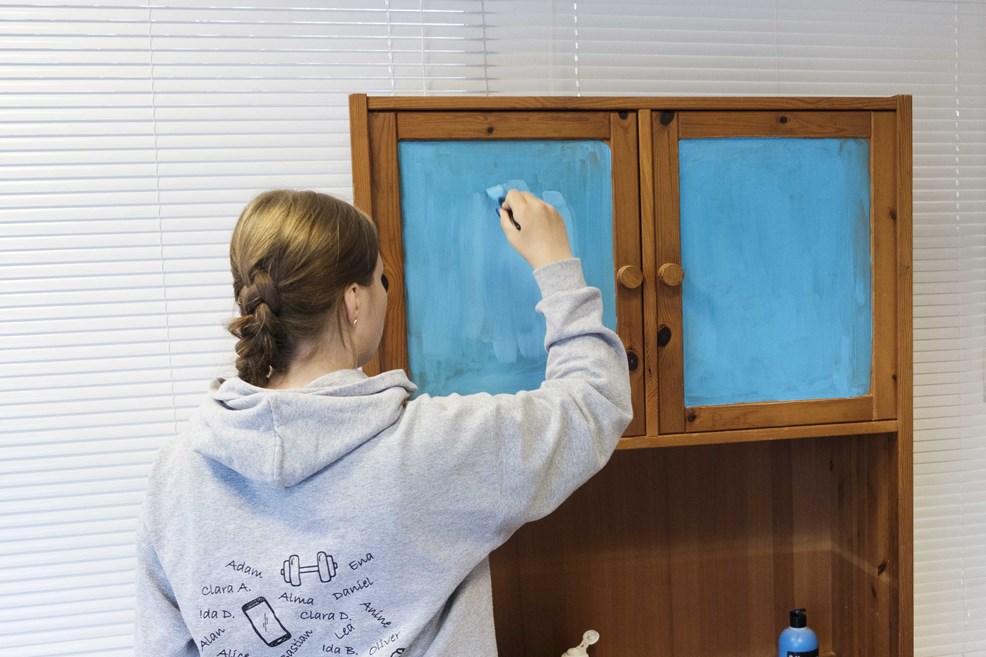 Og kaos bliver der i sandhed, da alle eleverne på 10KCD giver sig i kast med dagens projekter. Fællesrummet, klasselokaler og områderne udenfor flyder med værktøj, tekstiler, træ, men ikke mindst vrimler det med flittige elever, der forvandler skrot til nye møbler og udsmykning til skolen.