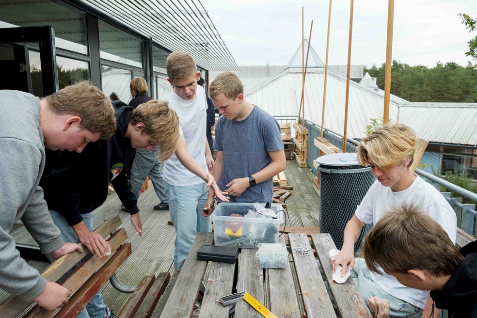 - Håndværk og byggeri, Design, Idræt og Global arbejder på forskellige måder med det, og bidrager med det, som de er gode til. Udover at tænke i bæredygtige løsninger, så er det et ryste-sammen-projekt, og indretningen skal give dem noget ejerskab over skolen, siger lærer Henrik Krog.