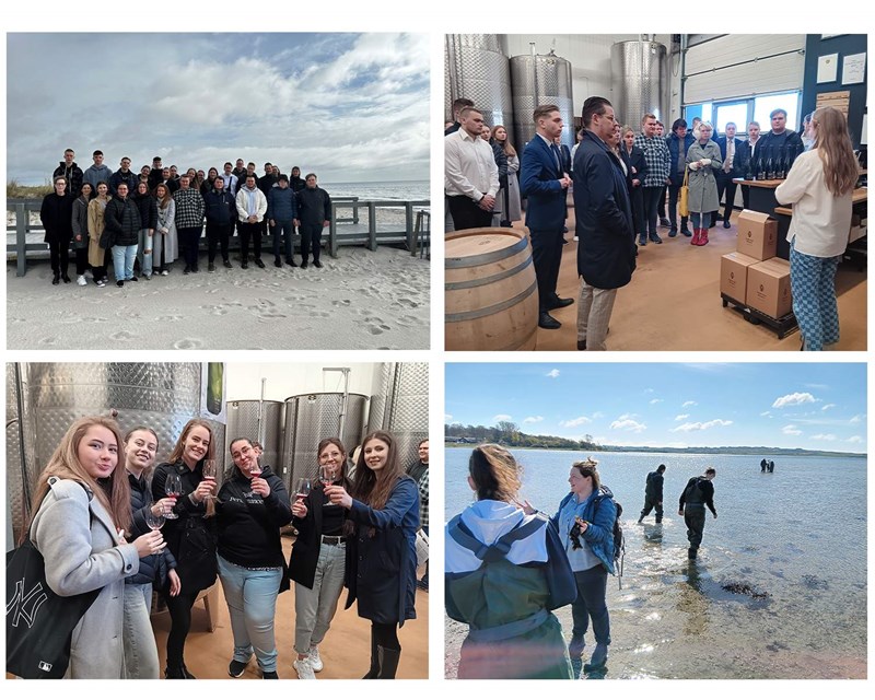 Når der ikke blev kokkereret, var eleverne ude af huset. Her har de bl.a. smagt danske vine hos Andersen Winery, lært om hoteldrift på Fuglsøcenteret og gastronomi i stor skala på Aarhus Universitetshospital.