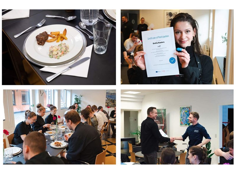 “Jeg vil opfordre jer til at tage ud at rejse og opleve, fordi som kok bliver man aldrig færdig med at lære. Det er vigtigt at møde andre madkulturer, og der er vores møde her et godt eksempel på, hvordan vi kan lære af hinandens forskelligheder. Uanset om man ender med at arbejde på en café eller et sted som Grehlin, når man er færdiguddannet, er arbejdet det samme. Fremgangsmåden er måske anderledes, men vi skal alle lave fantastisk og smuk mad.”